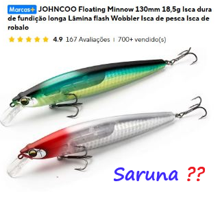 3. Fui dar uma conferida nas iscas mostradas, já que (no passado) cheguei a comprar algumas delas no mercado do AliExpress... Lhes confesso que foram produtos "inferiores" às matrizes originais, mas funcionaram, desde que "tropicalizadas" com troca de garateias e pitões... Dessas que foram indicadas, tentei captar algumas, mas não me pareceu serem fidedignas das originais...